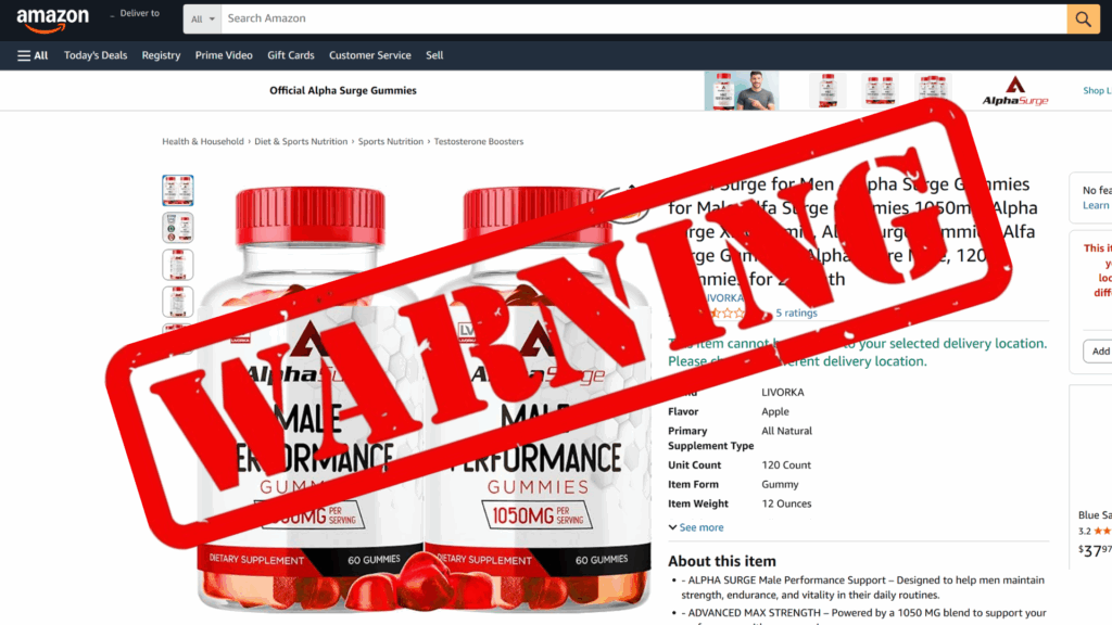 We strongly advise against ordering Alpha Surge from Amazon, Walmart, eBay or Walgreens, as these sources often sell fake versions with entirely different ingredients, which can be very dangerous.